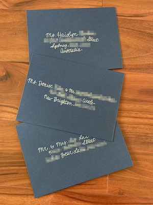 To add to the personalization of your event, we offer hand lettering for anything from your welcome sign, to addressing all your envelopes, to making a reminder for your guests to sign your guestbook, and more!